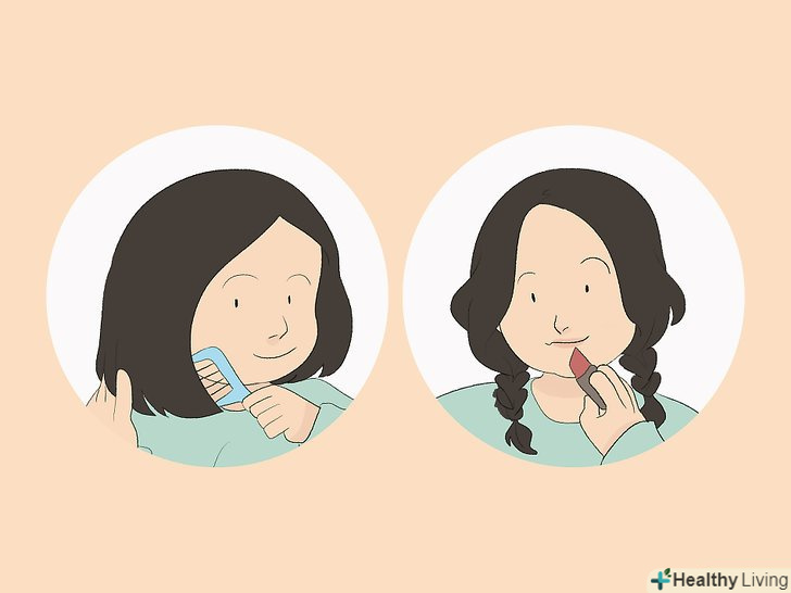 При необхідностіУкладіть волосся і нанесіть макіяж. укладіть волосся в улюбленому стилі або просто залиште все, як є. Нанесіть макіяж, якщо ви зазвичай користуєтеся косметикою. Це все повністю залежить від вашого стилю!- Наприклад, якщо у вас довге волосся, можна розчесати їх після душу, щоб вони не сплуталися. Якщо у вас коротке волосся, можна використовувати трохи гелю, щоб вони були укладені протягом дня, або просто залиште все як є.