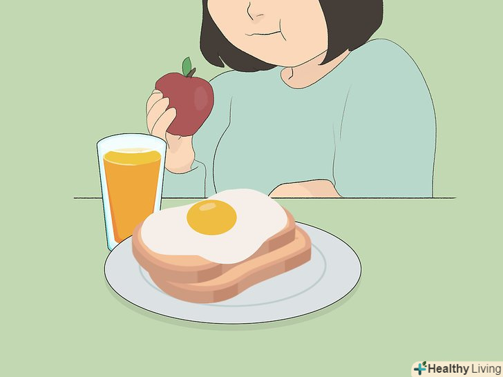 З'їжте корисний сніданок, щоб зарядитися енергією. спробуйте з'їдати поєднання білка і вуглеводів на сніданок, щоб у вас було багато енергії протягом дня. Відмінними варіантами є такі поєднання, як пластівці з молоком, яйця з тостами або йогурт з мюслями. [10]- Якщо ви не чистили зуби до цього, не забудьте зробити це після сніданку. Це важливо для здоров'я ротової порожнини і свіжості дихання!