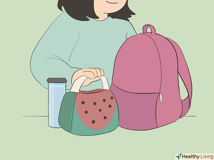 Упакуйте обід і покладіть його в рюкзак. приготуйте все необхідне для обіду, що не було зроблено напередодні ввечері. Покладіть все в ланчбокс, а потім помістіть його в рюкзак.- Також буде непогано упакувати пляшку води, щоб підтримувати водний баланс протягом усього навчального дня.