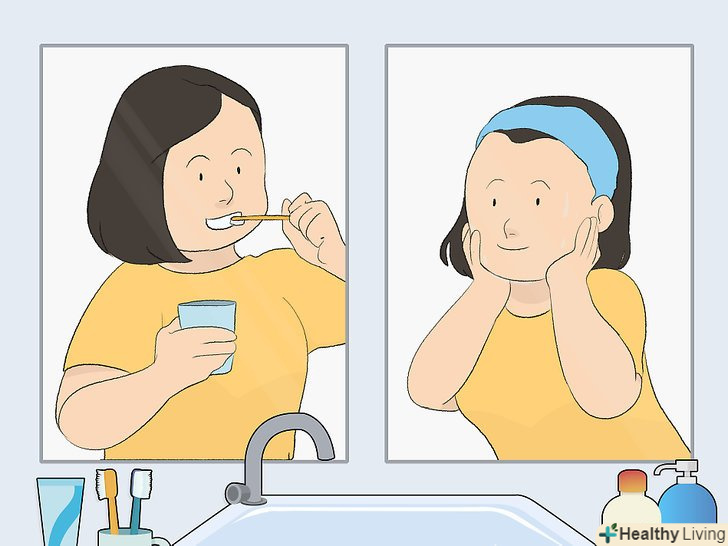 Попрямуйте у ванну кімнату, щоб подбати про особисті потреби і привести себе в порядок. зробіть всі необхідні справи в туалеті, а потім помийте руки і вмийтеся . Прийміть душ, якщо ви не зробили цього напередодні ввечері. Контрастний душ допоможе вам прокинутися і освіжитися перед початком навчального дня. [8]- Гель для душу або засіб для вмивання з ароматом м'яти допоможе вам підбадьоритися вранці.