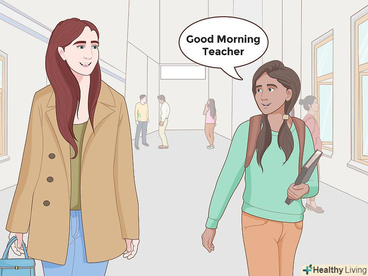 Посміхайтеся і поводьтеся дружелюбно. Уявіть собі, що ви прийшли на роботу і все навколо погано до вас ставляться. Так іноді може відчувати себе вчитель, коли заходить в клас, заповнений похмурими учнями. Якщо ви демонструєте доброзичливу поведінку і радість від зустрічі з учителем, це підвищить йому настрій і допоможе відчути, що його цінують. [10]- Вчитель може відрізнити, коли учень щиро дружелюбно поводиться і коли просто підлизується. Не заходьте занадто далеко і не ведіть себе неприродно.