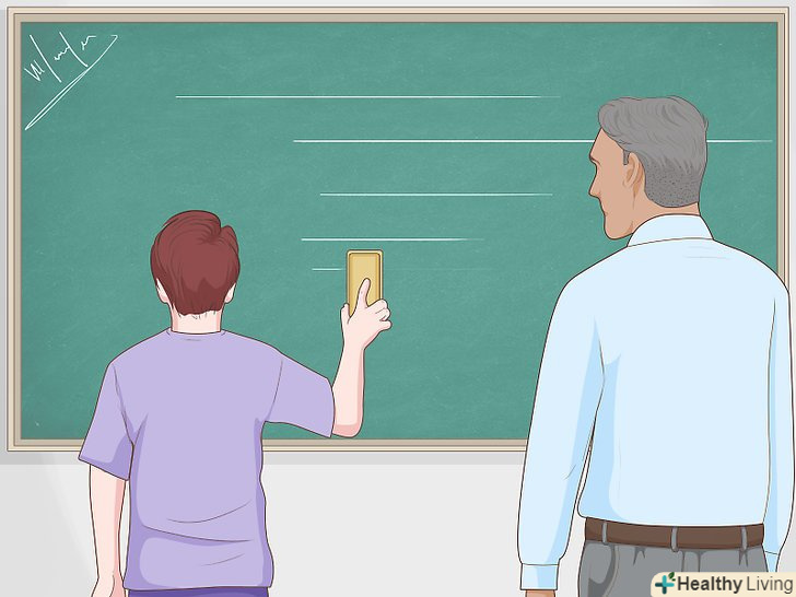 Допомагайте вчителю. вчити буває важко, і вчителі теж втомлюються, прямо як і ви. Якщо ви помітили, що потрібно протягнути вчителю руку допомоги, то запропонуйте свої послуги. Це безумовно не пройде непоміченим, вчитель оцінить ваше завзяття допомогти. [12]- Можна допомогти вчителю витерти дошку, передати роботи або принести щось в учительську.