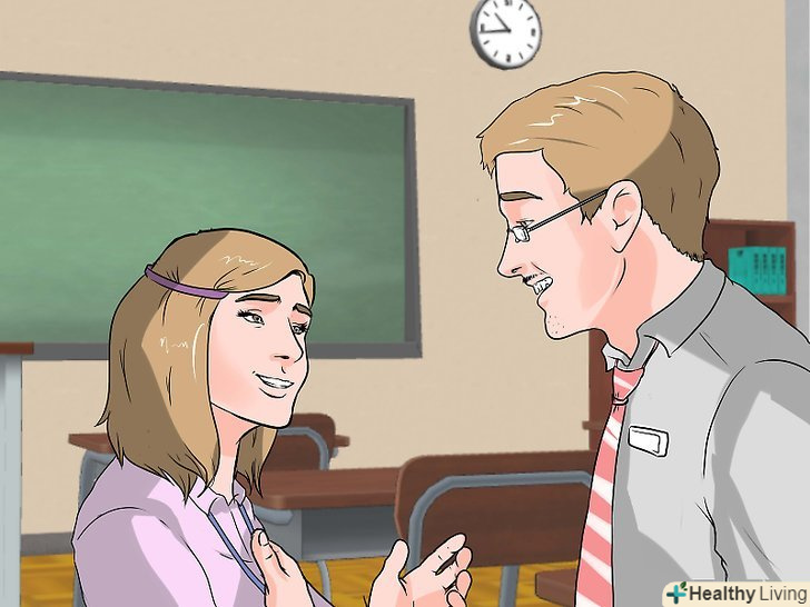 - Поговоріть з учителем. Якщо ваша нудьга пов'язана з учителем, який нецікаво підносить матеріал, домовтеся з ним про зустріч і розкажіть про свої почуття. Коли вчитель дізнається про вашу проблему, швидше за все, він зробить все можливе, щоб вам було цікаво на уроці. Наприклад, він буде частіше задіяти вас на уроці. [2]