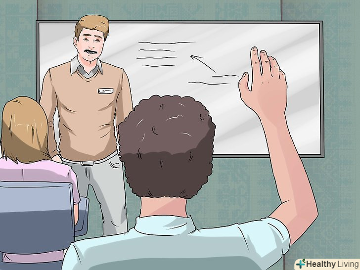 - Спілкуйтеся з однокласниками і вчителем. якщо просто сидіти на уроці і слухати, то насправді можна швидко занудьгувати. Задавайте питання, які стосуються даної теми, вчителю і однокласникам. [4]