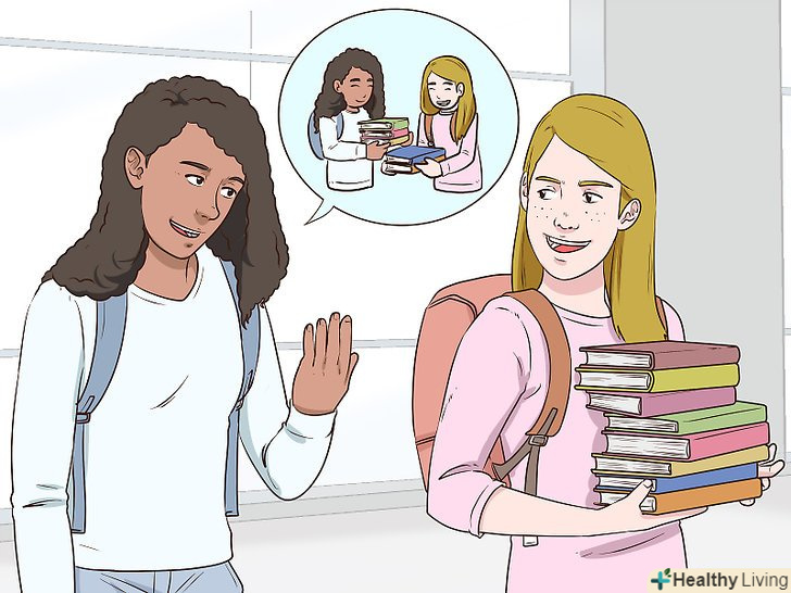 Будьте ввічливі і зосереджені. Вам не обов'язково заводити хороших друзів, але потрібно залишатися в хороших відносинах зі своїми однолітками і вчителями. У повсякденному житті намагайтеся вести себе добре і ставитеся до оточуючих так само, як хочете, щоб вони ставилися до вас. [9]- Коли ви добре ставитеся до інших людей, вони нічого не матимуть проти вас, і в майбутньому вам буде легше знайти друзів, якщо захочете.