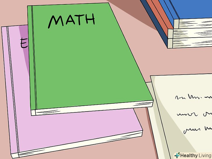 Упорядкуйте свої книги та папки. зберігайте все в окремому швидкозшивачі або папці для кожного предмета. Підбирайте обкладинку до будь-яких папок і книг відповідно до предмета, тобто, червоний = Англійська мова; зелений = наука; і так далі.