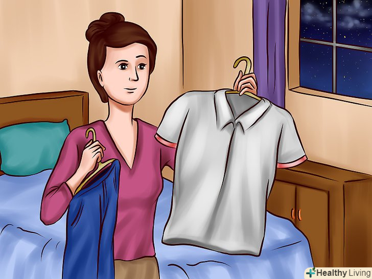 Заздалегідь готуйтеся до наступного дня. Одна з причин, по якій багато хто не любить вставати рано, — напружений поспіх, коли потрібно швидко зібратися і своєчасно вийти з дому, щоб не запізнитися. Щоб частково позбавити себе від подібного стресу, підберіть і розкладіть одяг ще з вечора, приготуйте контейнер з обідом, покладіть необхідні книги і зошити в портфель або рюкзак і переконайтеся в тому, що ви виконали і взяли з собою все, що потрібно для занять.- Покладіть одяг, взуття та аксесуари там, де ви будете їх надягати (будь то ванна кімната або ваша спальня).
