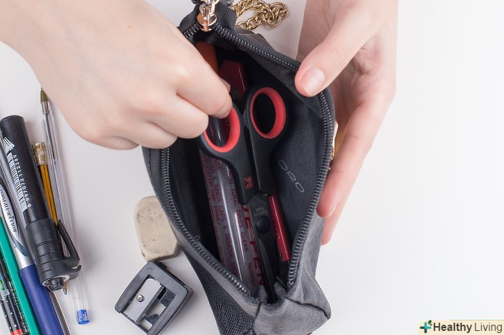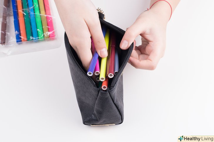 Почніть з речей першої необхідності. кожен день учень повинен носити з собою одні і ті ж пишучі приналежності. Однак, на деяких заняттях вам можуть стати в нагоді якісь особливі олівці або ручки, але спочатку укладіть в пенал те, що потрібно вам кожен день і на кожному занятті. Ось кілька прикладів того, що повинно бути у вас в пеналі перш за все: [1]- Два простих олівця