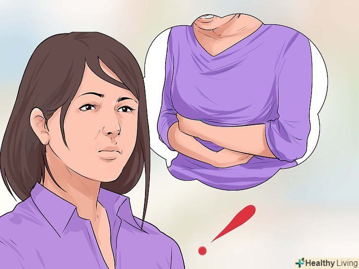 Ознайомтеся з попереджувальними знаками менструального циклу. менструація часто викликає побічні ефекти, такі як спазми, здуття живота, акне і болючість грудей. Якщо ви відчуваєте один або кілька з цих симптомів, місячні скоро почнуться. [4]- При подібних симптомах потрібно двічі перевірити, чи все у вас на місці. Переконайтеся, що запасні прокладки або тампони на своїх місцях. Крім того, переконайтеся, що у вас достатньо прокладок / тампонів на найближчі дні і перевірте, чи на місці знеболюючі.