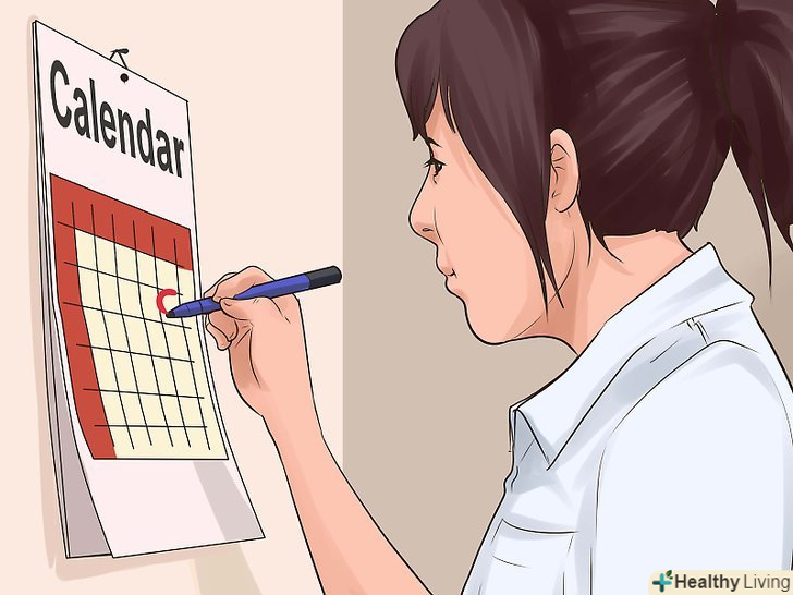 Знайте, коли настануть ці дні. місячні у вас можуть бути не дуже регулярними, але все ж не зайвим буде вести календар. Це не тільки дозволить вам уникнути неприємних сюрпризів, але і заздалегідь прийняти всі належні запобіжні заходи — наприклад, знаючи, що приблизно на цьому тижні почнуться місячні, ви можете почати використовувати прокладки.- Звичайно, коли у вас вже зібрано все, що потрібно для спокійної «зустрічі» місячних, це одне. Але коли ви ще й знаєте, коли вони приблизно настануть - це вже зовсім інше! В середньому менструальний цикл становить 28 днів, але може варіюватися від 21 до 45 днів у підлітковому віці. Відзначайте дні, коли починаються місячні, в особистому календарі або використовуйте мобільні додатки, яких зараз безліч. [3]