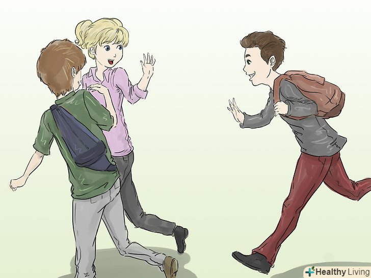 По-перше, будьте комунікабельним. незважаючи на те, що новачки в середній школі не настільки доброзичливі, як новачки в коледжі, ви повинні намагатися бути якомога більш товариським, поки люди не об'єдналися в соціальні групи і стали менш розташовані до знайомства з іншими людьми. Отже, скажіть "Привіт" дівчинці з уроку французької, будьте доброзичливі з партнером по лабораторній роботі, дізнайтеся краще своїх однокласників, зрештою, вам сидіти з ними поруч найближчі чотири роки.- Познайомтеся з хлопцями на уроці фізкультури.