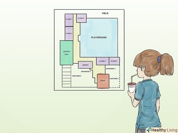 Вивчіть карту школи. Може, це і звучить дивно, але недооцінюйте те, наскільки комфортніше ви будете себе почувати в новій школі, якщо в перший день занять вже будете знати, куди йти. На це варто звернути увагу не тільки на вступному курсі, але взяти карту школи, якщо є така можливість, і знайти найзручніші варіанти переходу з класу в клас. Коли ви будете знати, як точно розрахувати ті дорогоцінні 3-4 хвилини, які є у вас на пересування, ви зможете уникнути стресу і прийти на урок вчасно.- Якщо під час зміни не виходить дійти до свого шафки, а потім до класу, подумайте, чи можете ви скористатися шафкою одного. Це позбавить вас від необхідності скрізь носити з собою одночасно по 8 підручників.