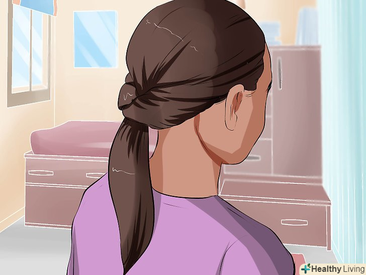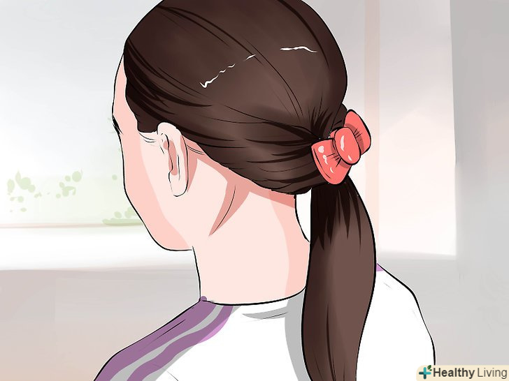 Зробіть модний "кінський хвіст", щоб прибрати волосся з обличчя. однією рукою зберіть або зачешіть волосся назад, максимально пригладивши пасма, щоб уникнути «півнів». За допомогою іншої руки протягніть хвіст через еластичну гумку. Скрутіть гумку в формі вісімки і протягніть волосся через петлю, що утворилася. Продовжуйте скручувати гумку і протягувати через неї хвіст, поки гумка не стане досить щільною.- Можна прикрасити гумку за допомогою декоративної гумки, стрічки або банта.