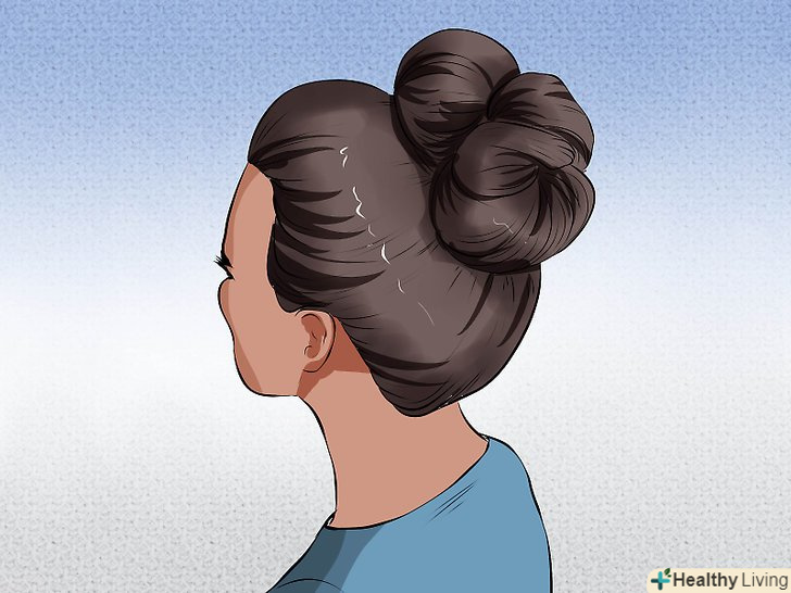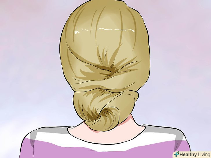 Зробіть недбалий пучок. почніть з Високого «кінського хвоста». Скрутіть волосся і оберніть їх навколо основи хвоста. Закріпіть волосся гумкою, надівши її поверх пучка, при цьому звертаючи увагу на те, щоб кінчики волосся були під гумкою. Трохи струсіть головою і витягніть кілька пасом, поки не досягнете бажаної недбалості.
