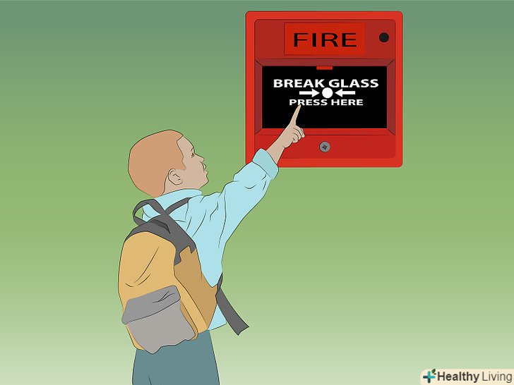 Знайте як звучить ваша Пожежна тривога. це сирена або звук схожий на детектор диму, ви повинні з легкістю розрізняти пожежну тривогу від простого шкільного дзвінка. Якщо використовується дзвінок, переконайтеся, що Ви знаєте, що це за сигнал.