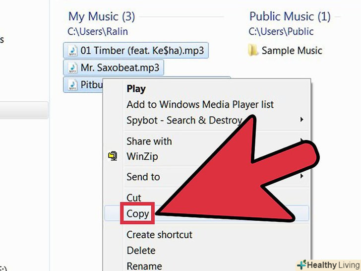 Скопіюйте пісні, які вибрали, в окрему папку, наприклад, Мої документи. переконайтеся, що ви скопіювали їх, не переміщуйте, - в іншому випадку музика зникне з папок, в яких вона була до цього.