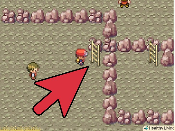 Ідіть вниз, пройдіть двох тренерів, поки не доберетеся до каменю біля отвору в землі.штовхайте в нього камінь, а потім стрибайте за ним. Штовхайте той же камінь наліво на Перемикач. Підніметься бар'єр, відкривши сходи на платформі над вами. Ідіть вгору по сходах, піднімаючись на платформу.
