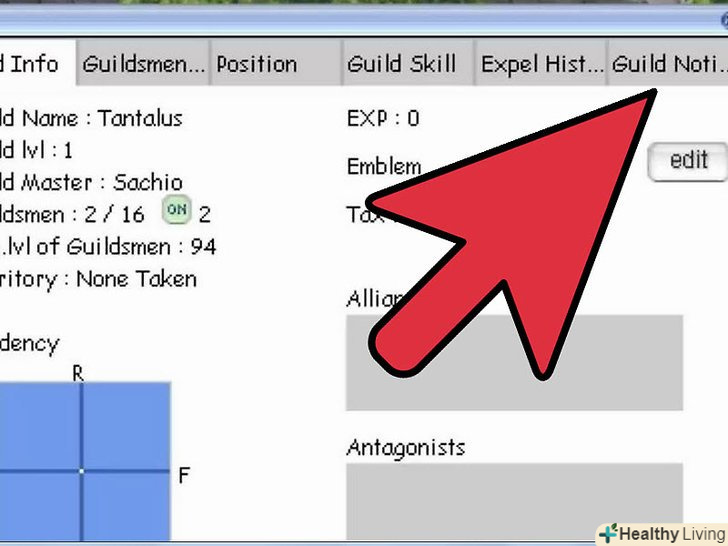 Зробіть гільдію.після того, як Ви отримаєте Емперіум, створіть гільдію, написавши таку команду /guild (імягільдії). (наприклад, / guild FiveMinuteMeal)- Персонаж, у якого знаходиться Емперіум, буде майстром створеної Гільдії "Guild Master". Коли ви створите гільдію, її назва і майстри вже змінити буде не можна.