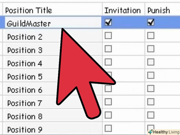 Натисніть на вкладку Position.всього можна роздати 20 титулів, це робить майстер Гільдії. Порядок написання членів гільдії в списку залежить від їх титулів.- Як зазначено вище, титули дають членам Гільдії додаткові повноваження, так що вибирайте тих, кому довіряєте.