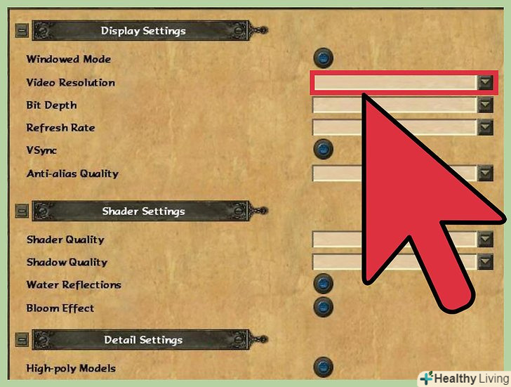 Відкрийте вікно "дозвіл екрана".натисніть на "Налаштування дозволу екрану «в розділі»Оформлення та персоналізація". У спадному меню "дозвіл" виберіть потрібну роздільну здатність. Саме такий дозвіл прийме гра AoE2HD і робочий стіл Windows. Рекомендований дозвіл залежить від розміру екрану монітора. Ось кілька популярних розмірів екрану з рекомендованими дозволами для них:- 14-дюймовий ЕПТ-монітор (співвідношення сторін 4:3): 1024x768;