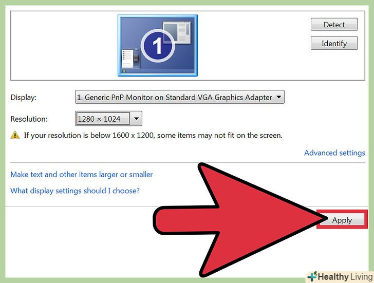 Збережіть зміни.вибравши бажане дозвіл екрану, натисніть на кнопку «Застосувати» в нижній частині вікна, щоб дозвіл змінилося.