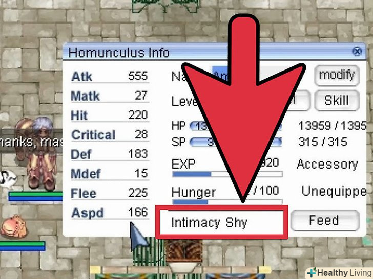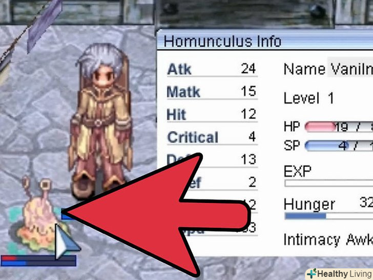 Спостерігайте за гомункулом.під час прокачування або довгої гри, власники дуже часто забувають погодувати свого вихованця, залишаючи його голодувати до тих пір, поки він не піде від вас. Щоб уникнути цього, дивіться за своїм гомункулом і звертайте увагу на емоції, що він показує.- Рівень голоду нижче 11% змусить вашого гомункула показувати емоцію / sob кожні 20 секунд.