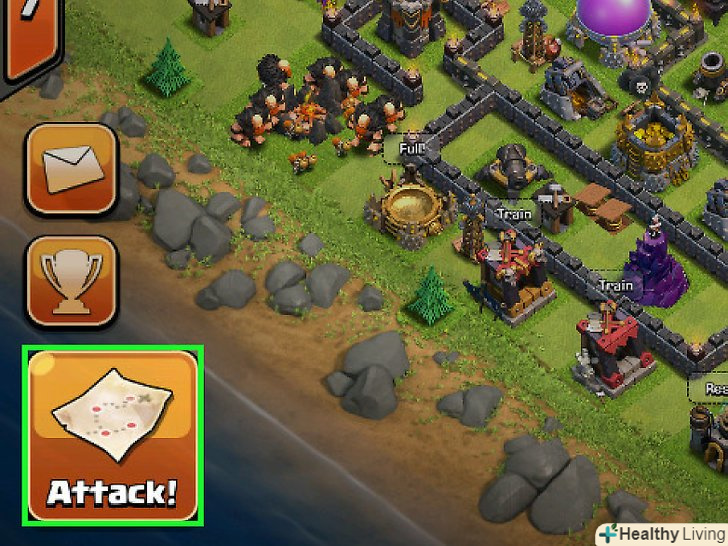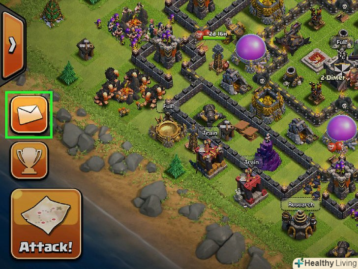Прив'яжіть Clash Of Clans до свого облікового запису на Facebook.так ви без зусиль знайдете тих друзів з Facebook, до облікових записів яких теж прив'язаний аккаунт в Clash of Clans.- Запустіть Clash Of Clans і натисніть на кнопку Трофей.