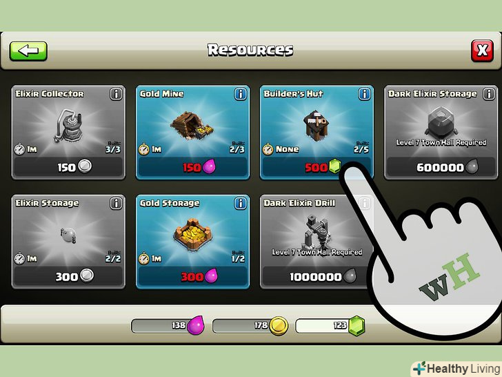 Не купуйте ресурси.у Clash Of Clans ви можете купувати ігрові ресурси за Свої самоцвіти. Не робіть цього. Хоча це і заощадить вам час, ви можете отримати всі ці ресурси, просто граючи в гру. [2]
