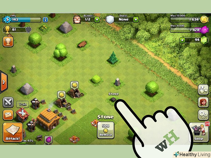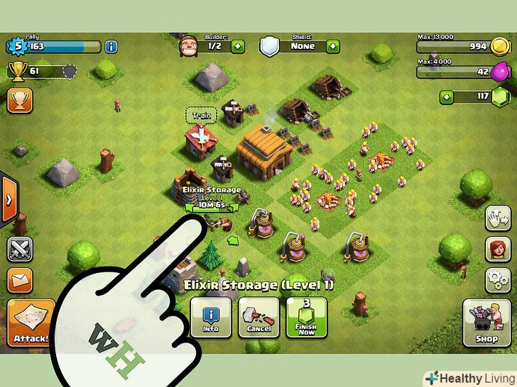 Збережіть свої початкові самоцвіти.коли ви почнете нову гру, Ви отримаєте 500 самоцвітів. Ні за яких обставин не витрачайте ці самоцвіти на прискорення часу побудови вашого села. Терпляче дочекайтеся їх завершення, ці самоцвіти вам ще знадобляться.- У навчанні вам порадять витрачати самоцвіти на прискорення часу виробництва. Ігноруйте ці поради, щоб зберегти самоцвіти на більш пізній період.