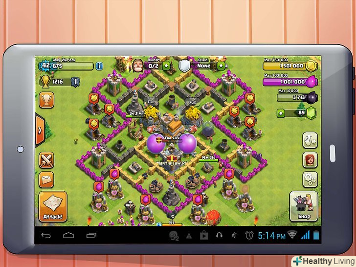 Створіть сильну стратегію захисту.сильні клани мають одну спільну рису: міцну захисну мережу. Спершу встановіть захист і переконайтеся в тому, що сховище добре захищене. Мортири повинні знаходитися поруч з ратушею, а гармати повинні бути після них. Нападайте тільки на тих людей, з якими ви зможете впоратися. Місії для одного гравця не коштують витрачених грошей.- Встановіть зброю і спорудити стіни навколо свого найціннішого майна. Ви також можете звести стіни навколо своєї бази для захисту проти нападу. Ви можете розмістити навколо захисних споруд військові табори, бараки і хатини будівельників і постійно їх покращувати.