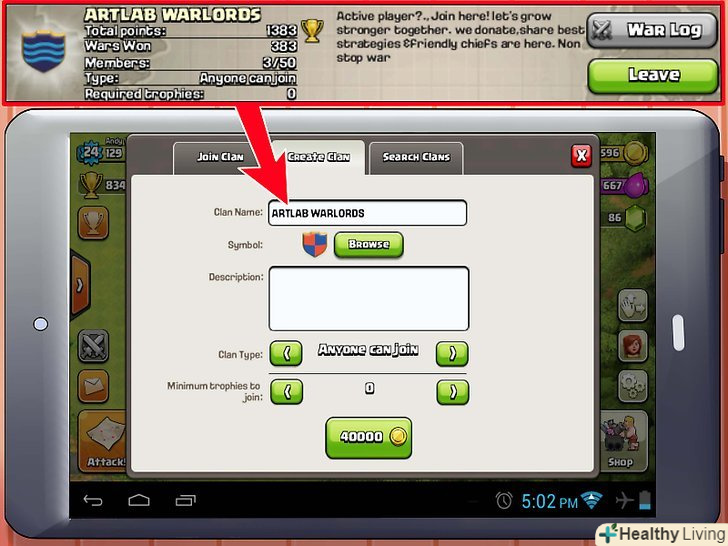 Придумайте гарну назву. для того щоб залучити в свій клан нових членів, ви повинні придумати для нього таку назву, яке б приваблювало собою людей, які шукають новий клан, і до якого їм хотілося б приєднатися більше, ніж ДО ІНШИХ. Клани з унікальною назвою можна буде знайти лише при пошуку конкретної назви, через що ви повинні уникати кліше і загальних назв для клану.- Постарайтеся придумати щось нове і цікаве і забудьте такі нудні назви, як «The Clash Clan» або «Великий клан», або «воїни». Ні, правда.