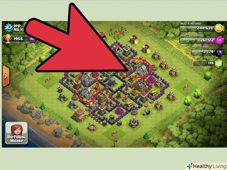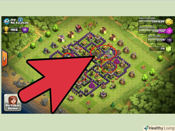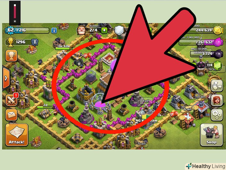 Підготуйте своє місто.перед тим як почати фармить, вам потрібно переконатися, що ваше місто правильно підготовлений для того, щоб захищати ресурси, і дозволяє втрачати достатньо, щоб опуститися до рівня, на якому ви хочете бути. Є кілька стратегій, про які важливо пам'ятати при будівництві міста.- Захищайте свої сховища. Так як ви фарбуєте ресурси, вам не хотілося б, щоб ваша здобич пішла до щасливого загарбника. Поставте свої сховища в центрі міста, оточивши їх кількома стінами і різними захисними спорудами.