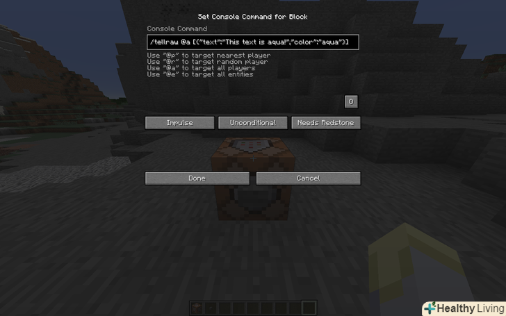 Відкрийте командний блок.- Введіть команду