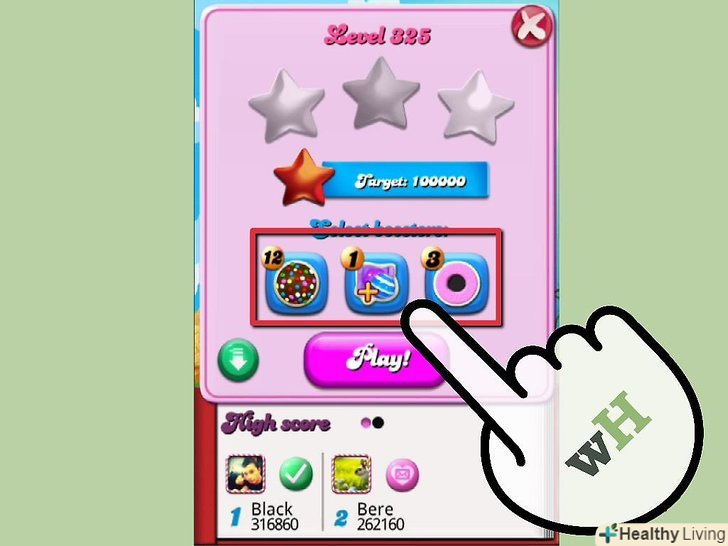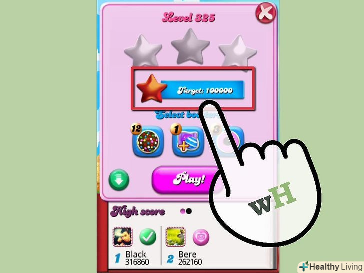 Використовуйте бустери. Ви отримуєте кілька бустерів на самому початку гри. Ви, також, можете купити бустери в грі, використовуючи справжні гроші. Вони можуть допомогти вам пройти рівні, якщо ви занадто розгнівані через гру або застрягли на рівні. Але, будьте обережні, коли ви їх використовуєте, так як ви ніколи не знаєте, коли вони можуть вам знадобитися.- Є бустер (який додає кількість кроків), є цукерковий молоток (який розбиває обрану цукерку), є цукерка розстановки (яка змінює положення цукерок на дошці) і багато інших бустери. Їх дія описується вам у міру їх отримання, хоча більшість з них, вам доведеться купити.