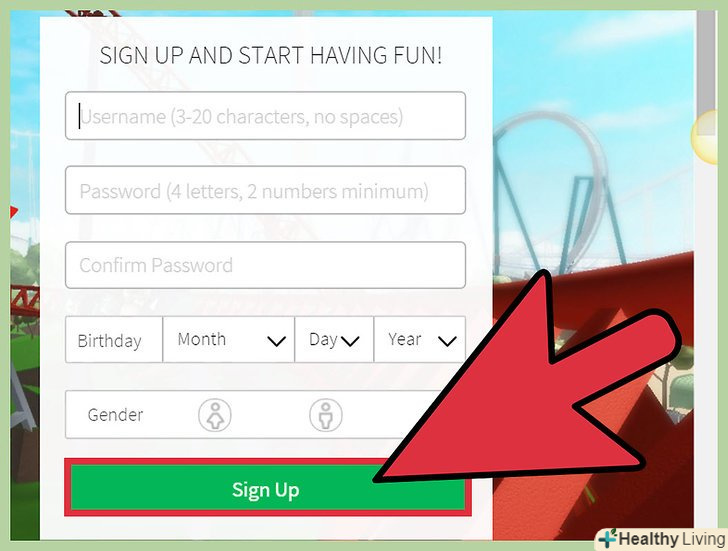 Зареєструйте обліковий запис. для цього вам потрібно заповнити ряд рядків на головній сторінці Roblox. Після реєстрації облікового запису натисніть на My Roblox , щоб відкрити свою домашню сторінку.- В Roblox можуть грати люди будь-якого віку. Потрібно лише, щоб у них був активний адресу електронної пошти для реєстрації облікового запису. Щоб почати грати, придумайте ім'я свого облікового запису, а потім підтвердіть реєстрацію в електронному листі.
