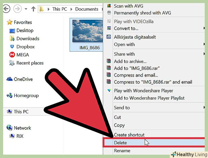 Видаліть файли.аналогічно першому кроку за допомогою команд Windows можна видаляти файли. Виділіть файл, а потім натисніть клавішу " Del " на клавіатурі. Або просто перетягніть файл у кошик.- Файли, які були видалені з папки, також будуть видалені і з хмарного сховища.
