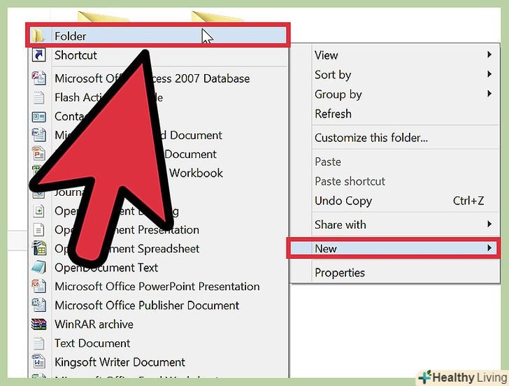 Додайте папки.якщо ви хочете додати папки в свій хмарний диск, щоб краще впорядкувати файли, додайте папки в основну папку MEGA за допомогою команд Windows. Натисніть правою кнопкою миші на порожню область в папці, а потім виберіть в контекстному меню опцію "Створити«, а потім»Папку". Після цього буде створена нова папка, яку можна якось назвати.- Нові папки, які ви створите всередині папки "MEGA", теж будуть завантажені і відображені в хмарному сховищі. У створеній папці можна вставляти, переміщати і копіювати файли (як в кроці 3).