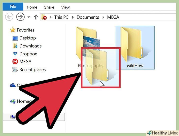 Перемістіть папки.подібно до першого кроку, за допомогою команд Windows в папці "MEGA" можна переміщати і копіювати папки. Якщо ви не хочете вставляти файли по одному, перемістіть або скопіюйте цілу папку.- Всі файли всередині цієї папки також будуть скопійовані в нову папку. Всі зміни, внесені в локальну папку "MEGA", будуть оновлені і відображені в хмарному сховищі.