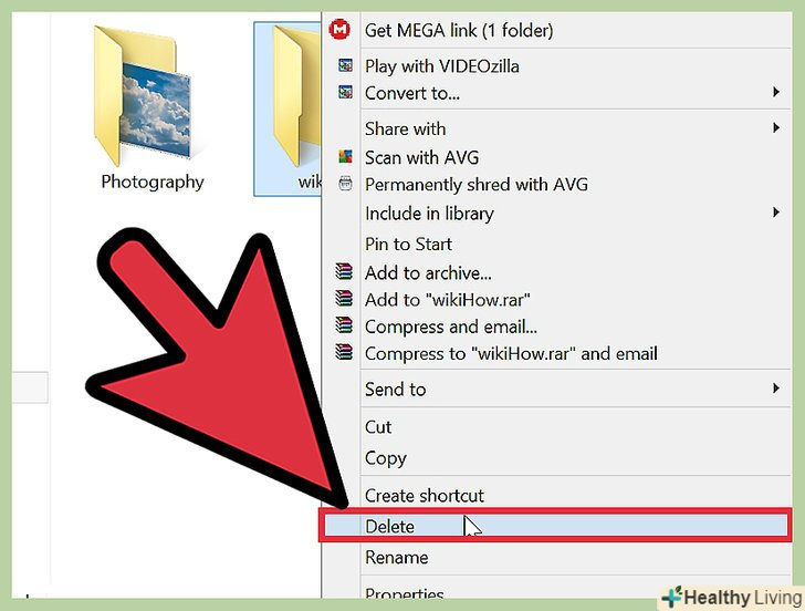 Видаліть папки за допомогою команд Windows. виділіть папку, а потім натисніть на клавішу " Del " на клавіатурі. Або просто перемістіть папку в кошик.- Всі файли всередині віддаленої папки будуть видалені з локальної папки "MEGA" і з хмарного сховища.