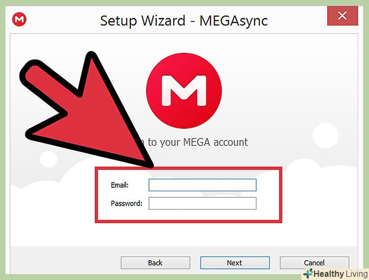 Увійдіть в обліковий запис.перед завершенням установки вас попросять увійти в свій аккаунт. Програма використовує аккаунт для доступу до файлів з хмарного сховища. Введіть свою адресу електронної пошти та пароль, а потім натисніть "Далі".