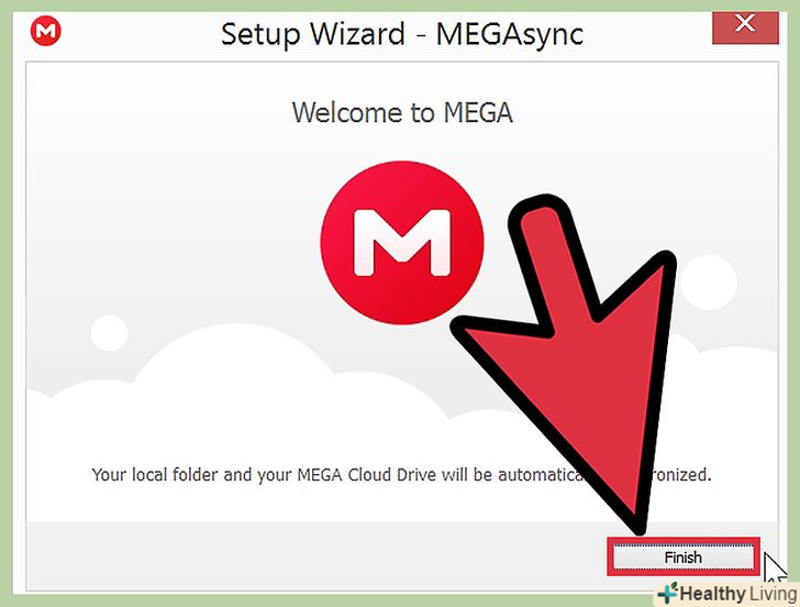 Скачайте клієнт Mega Sync.натисніть на комірку з логотипом Windows і текстом "Безкоштовне завантаження на Windows", щоб перейти до завантаження інсталяційного файлу.- Встановіть клієнт Mega Sync. коли завантаження завершиться, знайдіть інсталяційний файл на комп'ютері. Файл буде називатися " MEGAsyncSetup.exe». Натисніть на цей файл подвійним клацанням лівою кнопкою миші, щоб почати установку програми.