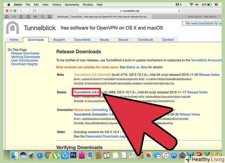 Скачайте програму Tunnelblick. це клієнт для підключення до VPN-сервера. Майте на увазі, що розробники OpenVPN не створили клієнт для Mac OS, а Tunnelblick – це безкоштовний OpenVPN-клієнт, який підтримує виключно Mac OS. Tunnelblick можна завантажити на цьому сайті. Скачайте останню стабільну (Stable) версію інсталятора.