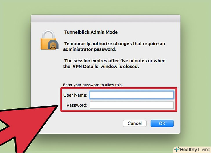 Двічі клацніть по завантаженому інсталятору. Відкриється нове вікно. Клацніть правою кнопкою миші на файлі tunnelblick.app і в меню виберіть "Відкрити". Підтвердіть ваше бажання запустити інсталятор, а потім введіть адміністративний логін і пароль.[3]