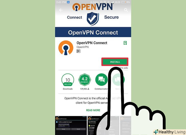 Скачайте додаток OpenVPN Connect.це офіційний OpenVPN-клієнт для системи Android. Цей клієнт можна завантажити в Google Play Store. Для установки і роботи клієнта кореневої доступ не потрібно.