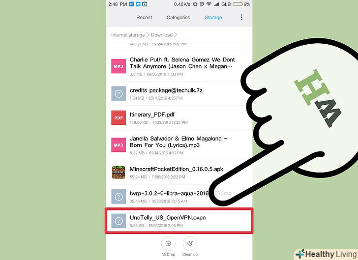 Завантажте файли конфігурації та сертифікати VPN-сервера.такі файли можна знайти на сторінці підтримки користувачів обраного VPN-сервісу. Можливо, вам знадобиться менеджер файлів, щоб розпакувати архів (zip-файл).