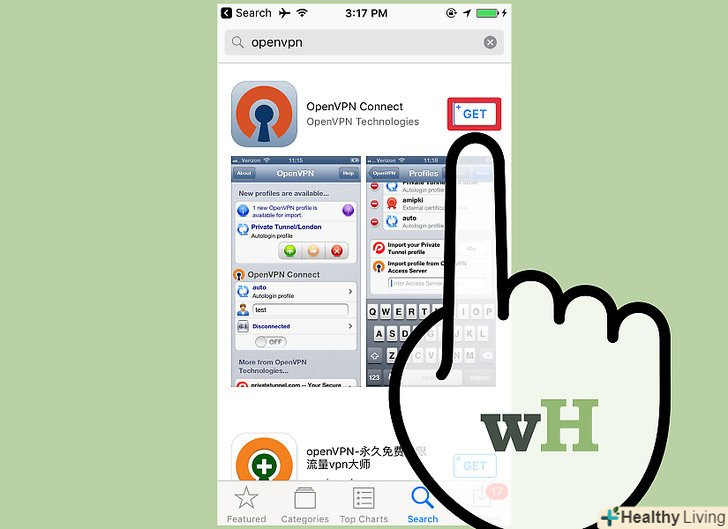 Скачайте додаток OpenVPN Connect.ця програма можна безкоштовно завантажити в App Store. Для установки і роботи OpenVPN Connect зламувати пристрій не потрібно.