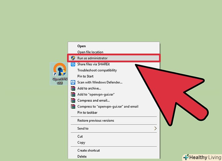 Клацніть правою кнопкою миші по ярлику OpenVPN-клієнта і в меню виберіть "Запуск від імені адміністратора". необхідно запустити OpenVPN-клієнт в якості адміністратора.- Перед запуском клієнта від імені адміністратора переконайтеся, що OpenVPN ще не запущений.