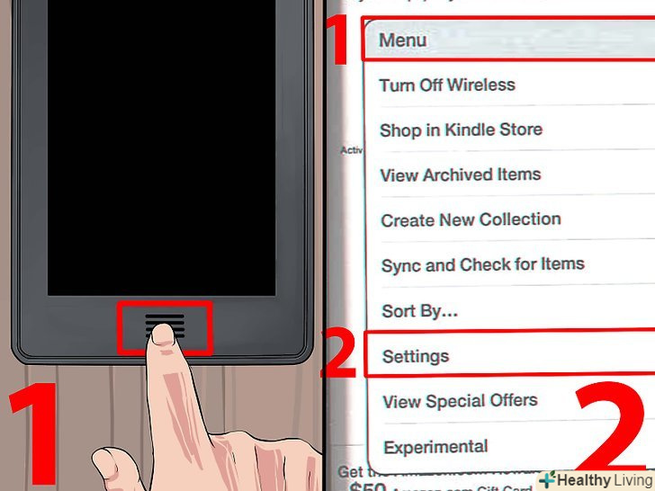 Повне скидання Kindle 5-Way Controller, включаючи Kindle четвертого і п'ятого поколінь. перейдіть на сторінку "Меню«, а потім натисніть» Меню «gt;» Налаштування «gt;» Меню «gt;»скидання до заводських налаштувань". Дочекайтеся перезавантаження пристрою.[15]