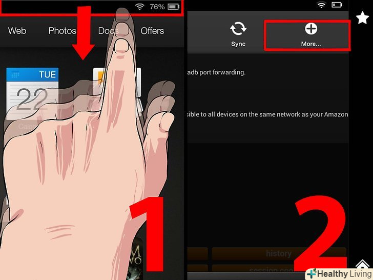 Повне скидання Kindle Fire і Kindle Fire HD.розкрийте верхнє меню і натисніть "детально". Потім натисніть "Налаштування «gt;»пристрій". У самому низу екрану натисніть "скидання до заводських налаштувань". Дочекайтеся перезавантаження пристрою. Якщо це не спрацювало, виконайте описаний процес ще раз, попередньо зарядивши пристрій.. Візьміть тонкий гострий предмет (наприклад, голку або зубочистку) і натисніть і утримуйте цю кнопку протягом 30 секунд або до тих пір, поки Kindle не вимкнеться. Дочекайтеся перезавантаження пристрою.[9][10]
