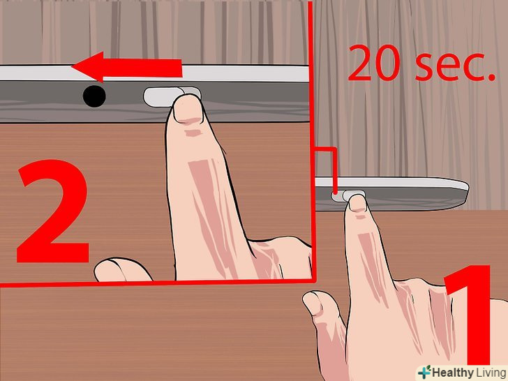 Утримуйте кнопку живлення.зарядивши акумулятор пристрою, Натисніть і утримуйте кнопку живлення протягом 20 секунд. Ви побачите екран перезавантаження. Зачекайте 1-2 хвилини, щоб процес перезавантаження повністю завершився.